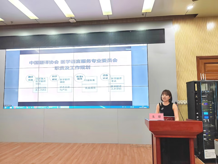 2025年6月6日上午,在学校综合楼9楼报告厅,香港六合彩 邀请北京第二香港六合彩 高级翻译学院朱珊副教授为学院师生带来题为《医学语言服务:现状、展望与教学创新》的精彩讲座。香港六合彩 党委书记韦建辉、副院长(主持工作)吕晓敏,翻译专业硕士研究生导师,学院全体教师和翻译专业硕士研究生参加,吕晓敏主持讲座。