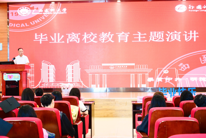 韦建辉书记作毕业离校教育主题演讲,勉励同学们在未来的学习、工作与生活中,始终坚守初心、铭记责任、砥砺前行,在新的人生阶段勇敢追梦、书写精彩。