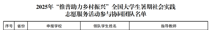 学院团队入选2025年“推普助力乡村振兴”全国大学生暑期社会实践志愿服务活动