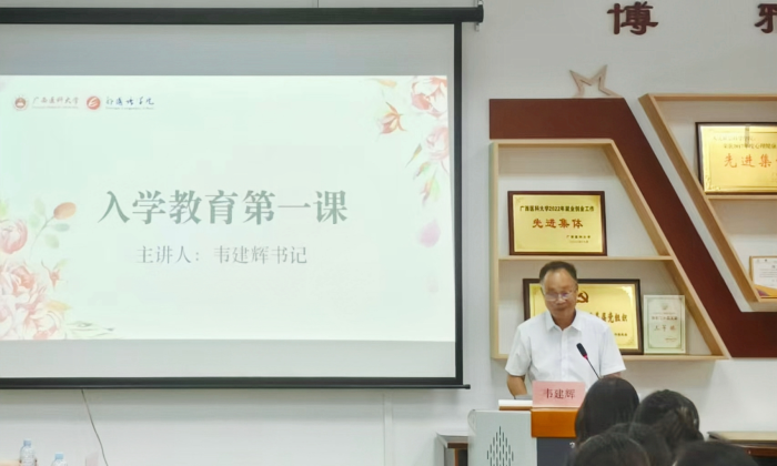 入学教育阶段,翻译硕士教育中心主任杨喆和辅导员刘琦分别介绍了研究生培养过程和教育管理。学院党委书记韦建辉为新生做入学教育第一课。他回顾了校党委书记陈川在新生入学教育专题报告会上提出的“医大三问”,并勉励同学们牢记“自学、研学、践学、教学、考学”五类方法,做到知行合一、学以致用。韦建辉指出,选择翻译专业硕士,就是选择了与时代同频共振的关键赛道,医学翻译更是关乎生命与责任的崇高事业。他希望同学们能够扎根医道,充分利用学院的硬核课程体系和实践平台,做到信仰之基铸魂、专业技能立身、奋斗之姿筑梦,在学院党委的坚强领导下,砥砺前行,不负韶华。