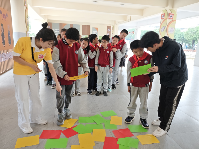 活动紧扣学校“学雷锋、做志愿、共同奋进‘十五五’”志愿服务月主题,志愿者们立足专业特长,结合四年级学生认知特点,精心设计“跳单词”“英语套圈圈”“你画我猜” 等趣味互动游戏,让孩子们在轻松愉快的氛围中认读英语基础词汇、练习标准发音,进一步巩固单词的实际运用能力。本科生党支部党员则充分发挥先锋模范作用,以党建带动团建,全程协助维持活动秩序、进行指导互动,用行动诠释新时代雷锋精神。